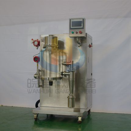 小型噴霧干燥機主要在科研階段對溶液或流體樣品進行噴霧干燥成粉或微小顆粒。其原理是通過霧化器將樣品霧化成微細霧滴,進入干燥室內進行熱交換,水份瞬間蒸發,固體經過旋風分離器進行回收,飽和氣體經過除塵器過濾后排空,本設備可應用于從試驗室到一般研究室的噴霧干燥作業,在食品醫藥化工行業均可良好的應用。